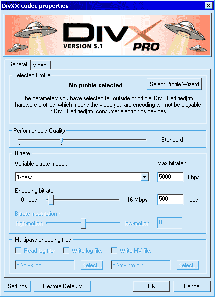 Advanced Settings for DivX Video Codec
