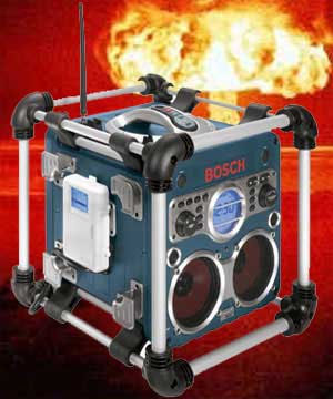 What the heck is the deal with this Bosch Power Box iPod dock? Deflecting onlookers from its intended purpose, this iPod dock looks like it could be used to trigger 50s-era nuclear weapons rather than just power and protect a stoopid iPod music player. But then, we're fed up with iPods anyway, so anything that would vaporize them all would be a welcome respite from having to write about them day in and day out.