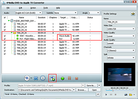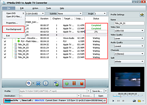 4Media DVD to Apple TV Converter proves professional to convert DVD and convert DVD to Apple TV MP4 (MPEG-4), convert DVD to Apple TV music MP3, AAC, WAV, put DVD on Apple TV with great quality and super fast converting speed!