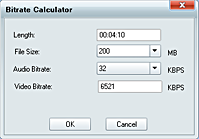 To do this, please click Tools>Bitrate Calculator to open Bitrate Calculator dialog box, select a file size you want, or enter the file size in the textbox directly.